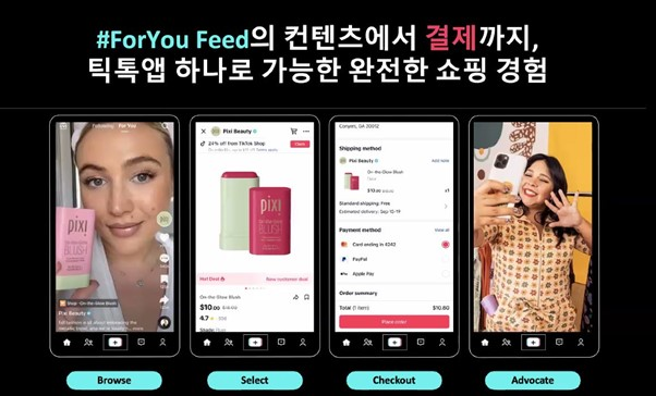 - 틱톡샵 연동으로 영상에서 바로 구매 가능 (링크 클릭 → 바로 결제)